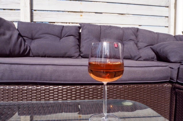 | Takapiha, aurinko ja viinilasi |