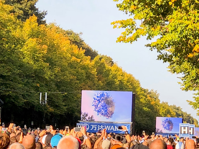 Berliinin maratonilla juoksijat starttaavat useassa eri erässä ja itse olin viimeisessä lähtöryhmässä jossa lähtivät kaikki jotka juoksivat ensimmäistä maratoniaan tai aiemmat ajat olivat yli 4:15:00. Alustavan aikataulun mukaan startti piti olla 9:45, mutta jostain syystä meidän ryhmä starttasi vasta 50 minuuttia ensimmäisen ryhmän jälkeen klo 10:05. Silti kannatti ajoissa olla paikalla, sillä pelkästään vessajonoissa meni helposti puoli tuntia.