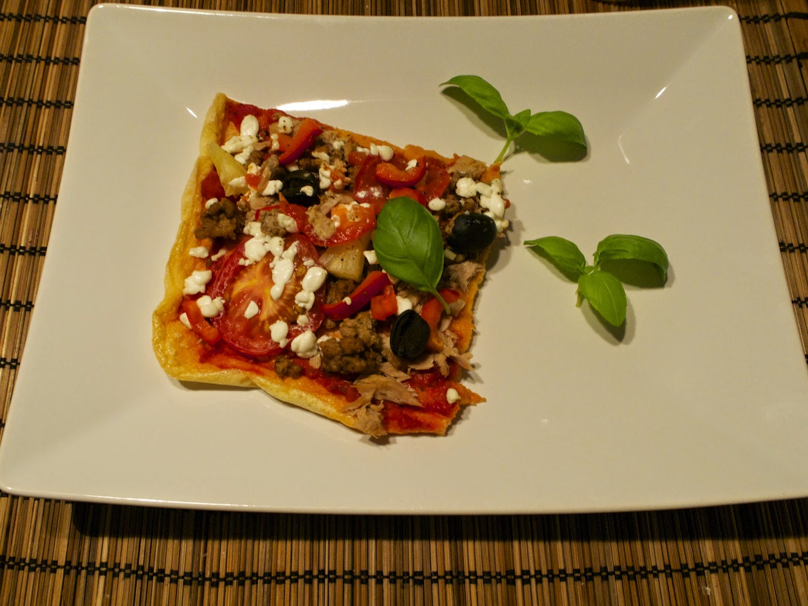 Tuo pohja on siis tehty kananmunasta joten se sopii myös gluteenittomaan ruokavalioon. Oli muuten maukasta pizzaa ja vielä kevyttä! Mikäs sen parempaa näin lauantai-illalle?