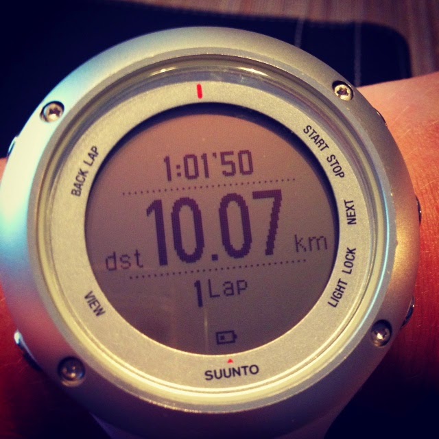 Lopputulema oli se, että 10 km:n matka taittui tunnissa, tai oikeastaan melkein kaksi minuuttia yli. Ihan tyytyväinen oon tuohon aikaan, kun ottaa huomioon eiliset salitreenit ja tuon muutenkin kiukutelleen takareiden/pakaran.