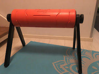 Ostettiin meille jokin aika sitten uudenlainen foam roller tai putkirulla, millä nimellä sitä sitten kutsuukin. Tämä High Roller on jaloilla seisova rulla, josta saa näppärästi myös matalamman version tai kokonaan jaloista irrallisen rullan. Hieman haasteellista on itselleni ollut päästä alkuun, koska tuo rulla liikkuu todella kevyesti akselinsa ympäri ja rullailuun pitää todella keskittyä.