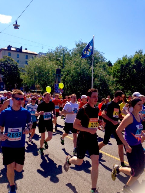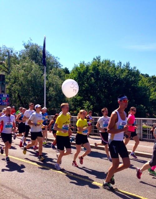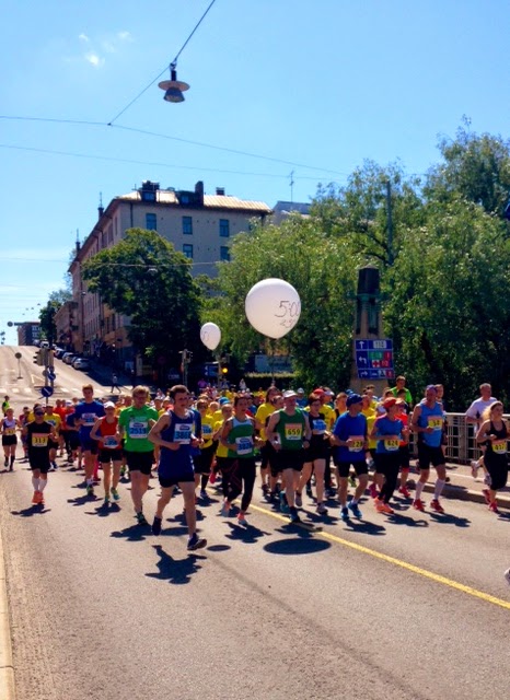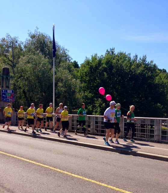 Lauantaina oli vielä Paavo Nurmi maraton, johon olisi kiva joku vuosi osallistua, mutta tänä vuonna ainakin jäi väliin. Pakko se oli silti mennä reitin varrelle vähän kannustamaan osallistujia ja Vauhtisammakon jäniksiä. Sammakoista tuli siis yhdeksi päiväksi jäniksiä. Jäniksille oli annettu mukaan ilmapallot joissa oli tavoiteaika mainittuna niin oli helppo juosta sen oman ajan mukaan jonkun muun osoittamalla tahdilla. Olivat kuulemma saaneet paljon kiitoksia hyvin hoidetusta hommasta. Hyvä Vauhtisammakot!