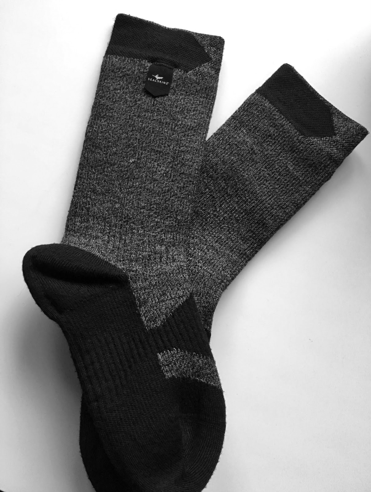 Ne on Sealskinzit. Yksi parhaista hankinnoista, kun puhutaan polkujuoksuvarusteista. Hieman pelkäsin, että mahtuuko ne mun polkujuoksukenkiin, kun kuitenkin ovat hieman paksummat kuin normaalit juoksusukat, mutta pelko oli turha, hyvin mahtuivat Hokan Speedgoateihin eikä hangannut yhtään.