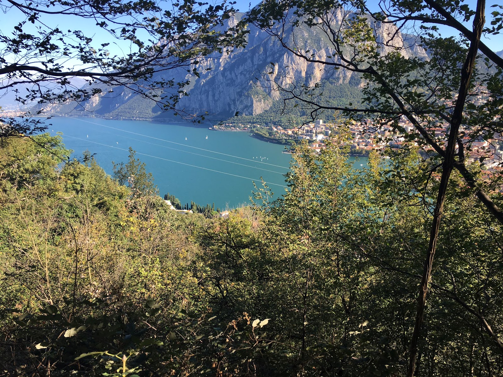 Maisemat huipulla oli kyllä kiipeämisen arvoiset! Sieltä näki kauas yli Como-järven, tai oikeastaan sillä puolen vuorta se oli Lecco-järvi. Usein puhutaan vain Como-järvestä riippumatta siitä, kummalla puolella on. Joistain paikallisista kartoista näin, että Comon kaupungin puoleinen järvi on Lago di Como ja tuo Leccon puoleinen järvi on Lago di Lecco.