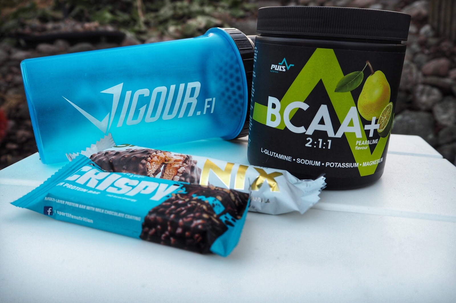Sain nyt Vigour.fi yhteistyön kautta mahdollisuuden järjestää teille lukijoille arvonnan, jonka kautta yhdellä teistä on mahdollisuus voittaa itselleen samoja tuotteita, joita myös minä käytän. Tuossa arvontapaketissa on mukana yllä olevassa kuvassakin oleva Puls BCAA+ (päärynä-lime 300g), pari proteiinipatukkaa ja sheikkeri mukaan napattavaksi.