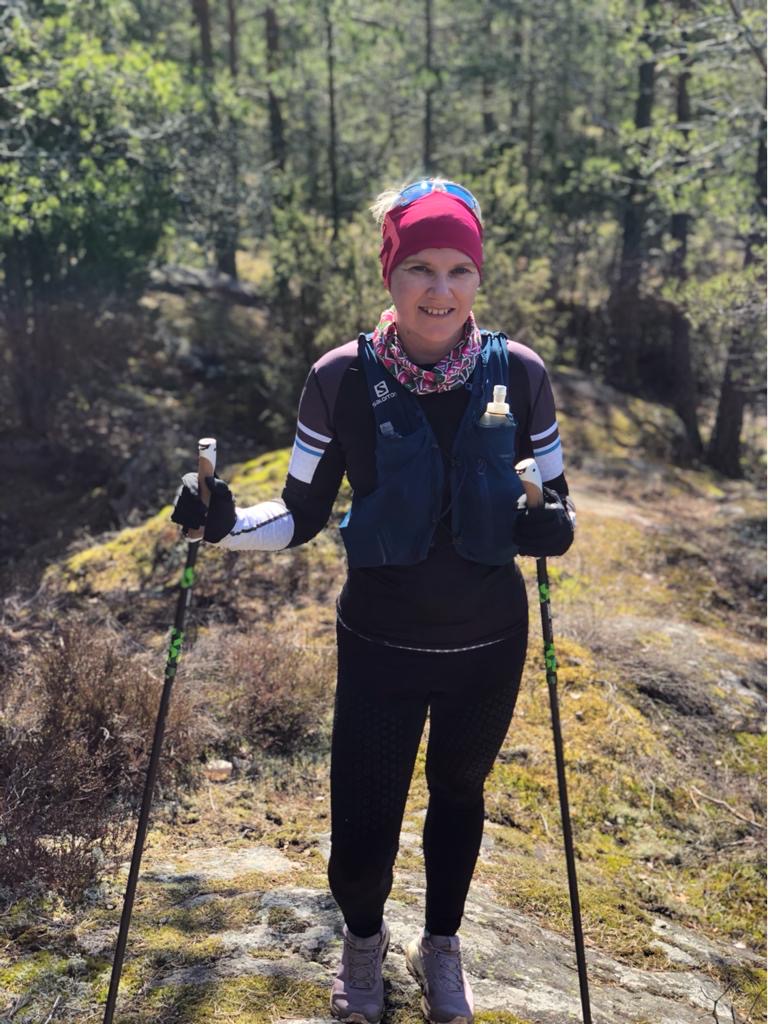 Treenien suhteen on silti pysytty suunnitelmissa ja tehty myös mäkitreeniä. Viime viikonloppuna käytiin testaamassa meille uusi mäki Liedon keskustan tuntumassa. Mäki oli todella hyvä sauvojen kanssa ylös tunkkaamiseen ja alas pääsi juoksemaan polkua pitkin mukavasti.