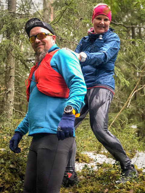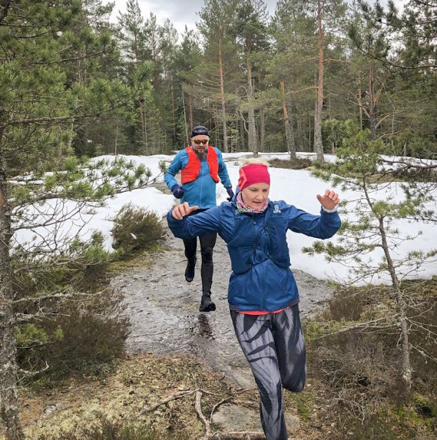 Tulevaa Karhunkierrosta ajatellen sunnuntain lenkit oli todella hyvät, koska mäkitreeniä tarvitaan, jotta jaksaa mennä siellä pitkin tuntureita ja hapenottokyky kasvaa. Samoin pitkäkestoisia lenkkejä on hyvä tehdä, että saa kestävyyttä pitkää matkaa varten.