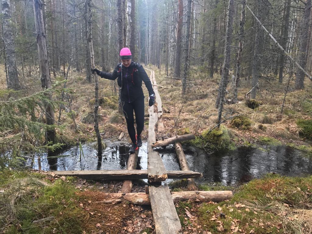 Polkujuoksu on hauskaa ja tältäkään reissulta tuskin kukaan pääsee maaliin kuivin jaloin. Polkujuoksukengät on hyvät tällä reitillä, mutta tavallisillakin juoksukengillä pärjää hyvin.