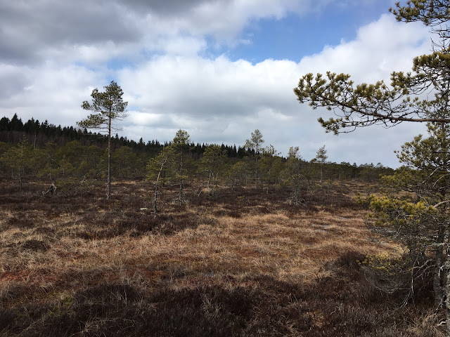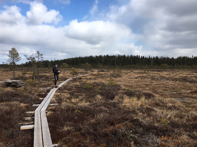 Keväällä, taisi olla pääsiäisenä, kävimme juoksemassa tuolla reilun 30 km lenkin ja siitä reissusta kerroinkin aiemmin myös täällä. Maisemat on todella kauniit ja luonto vaihtelee suomaastosta tiheään mäntymetsään.
