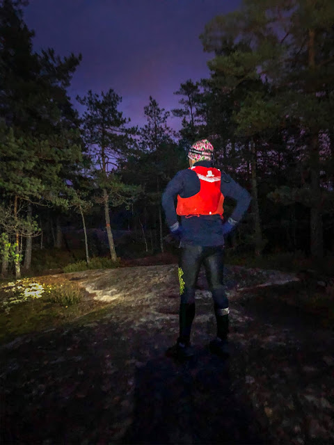 Suosittelen ehdottomasti kokeilemaan juosta poluilla pelkän lampun varassa, aistit herää ihan eri tavalla henkiin ja sitä saa olla aika hereillä että pysyy reitillä, vaikka se reitti olisikin se läpi koluttu.