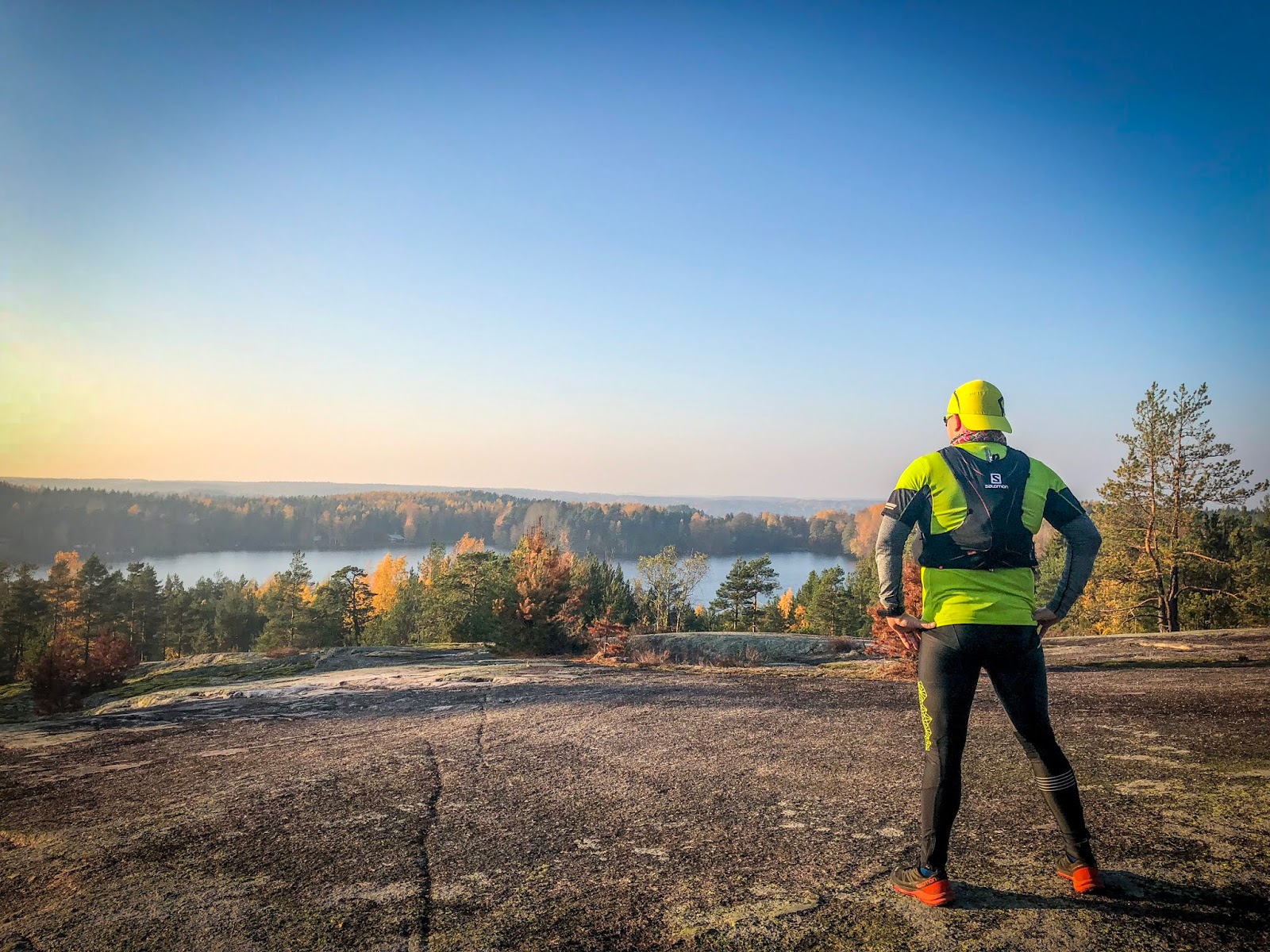 Pientä arvontaa aamusta mitkä varusteet tulee mukaan. Jalkaan valikoitui molemmille Salomonin S-Lab Sense Ultra-polkujuoksukengät, nuo ovatkin luottokenkäni pitkille matkoille sekä väsyneille jaloille.
