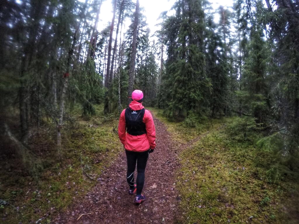Ensitöikseni hankin polkujuoksukengät, Salomonin S Lab Speedit. Myyjä vakuutti niiden olevan hyvät kaikenlaiseen polkujuoksuun. Ne tuntuivat todella hyvältä jalassa ja toimi hyvin myös liukkailla kallioilla. Lyhyillä matkoilla ne oli hyvin toimivat ja sain niistä juuri sen avun polkujuoksuun jonka tarvitsinkin. Vasta, kun matkat pitenivät huomasin pienen ”häiriötekijän”, mun jalat nimittäin alkoivat väsyä helposti ja tuntui kuin tuki ei olisi ollut tällöin enää riittävä.