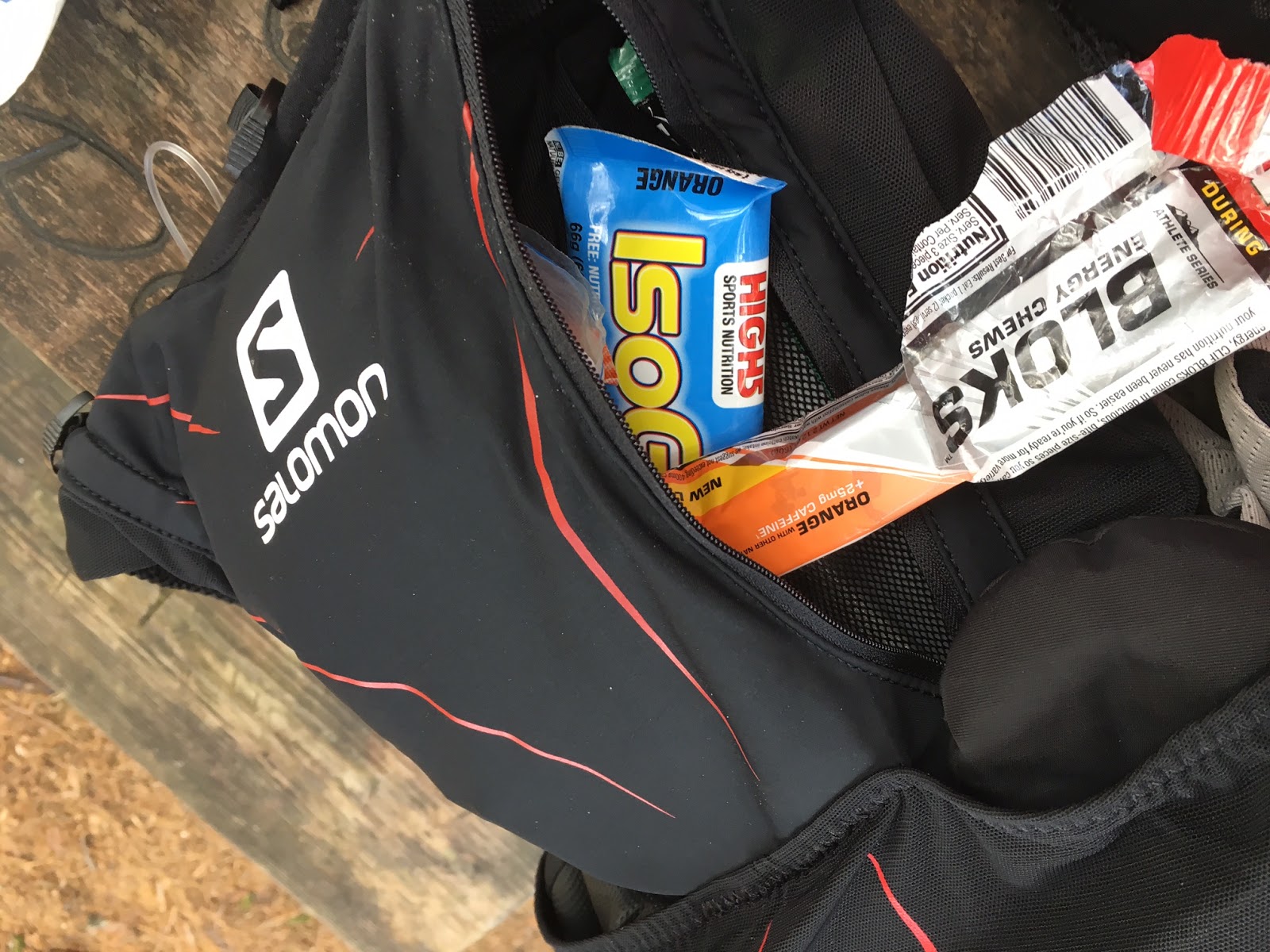 Ekaa maratonia varten treenatessa ostin Camelbakin juoksurepun, jossa oli juomarakon lisäksi pieni säilytyslokero avaimille ja parille energiageelille. Puhelin ei mahtunut siihen lokeroon, mutta sen sain onneksi tungettua juoksuvyöhön.