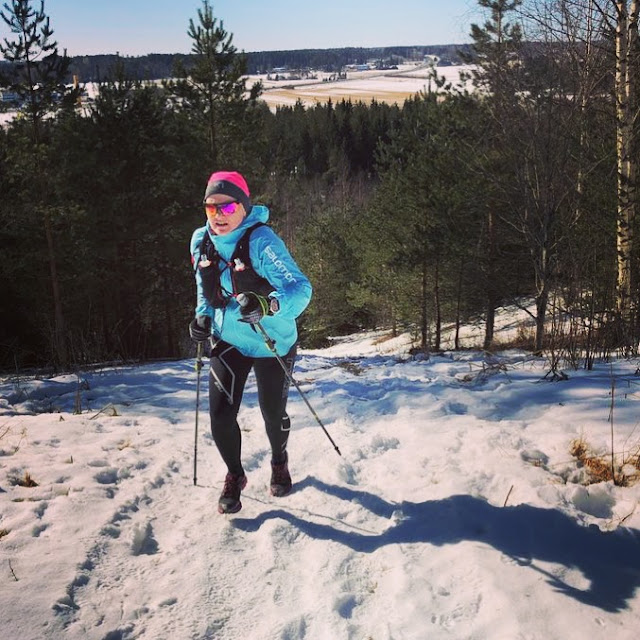 Polkujuoksu jäällä on ollut haastavaa itselleni, paljon auttaa nastakengät tuohon.