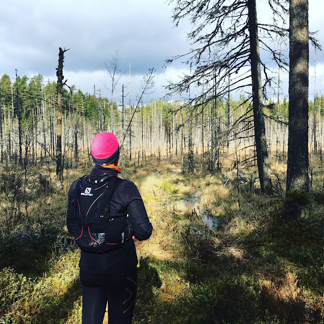 Itse tulee juostua poluilla sekä lyhyitä, että pitkiä matkoja. Välillä käydään lähimetsässä ja välillä lähdetään autolla vähän kauemmaksi. Joskus mukana ei ole mitään ylimääräistä ja joskus taas juoksuliivi, vesipullot, pähkinöitä ja muuta energiaa.