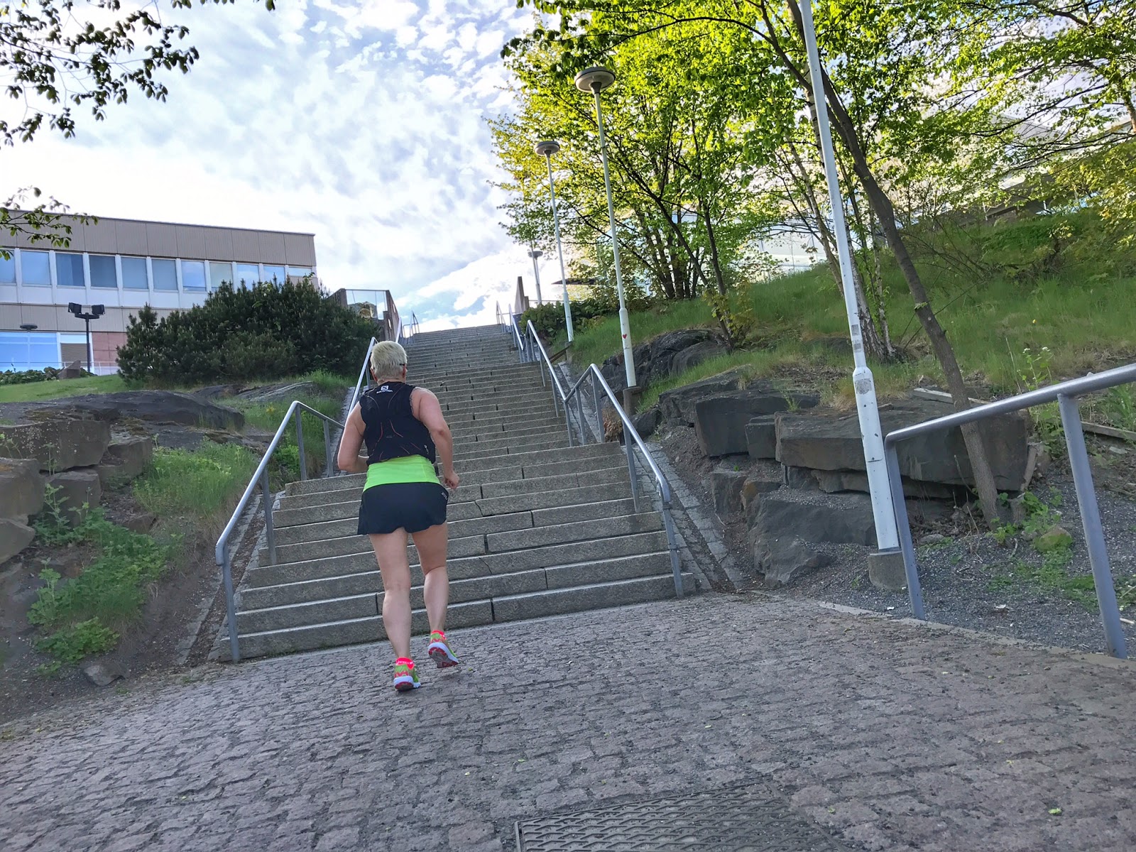 Osa portaista oli lyhyempiä ja osa hieman haastavampia ja pidempiä. Jotkut portaat oli tarkoitus vain juosta alaspäin, mutta osa juostiin edestakaisin. Yhdet portaat jäi kuvaamatta, nro 13 Martin portaat ja ne mentiin vain alaspäin. Omasta mielestäni rankimmat oli ehkä kohteen 6 Wecksellin portaat tai 9 Samppalinnan musiikkipaviljongin takaa nousevat portaat.