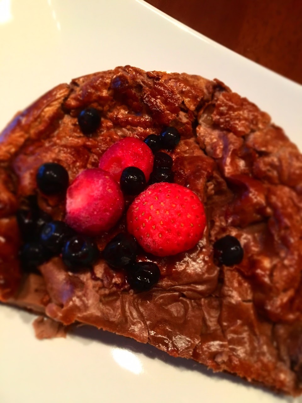 Tuohon pannariin kahdelle hengelle laitoin 2 kananmunaa, 2 dl kauramaitoa ja 1.5 dl suklaan makuista proteiinijauhetta. Kaikki aineet sekaisin ja voidellussa vuoassa uuniin 200 astetta noin 20 minuuttia. Ehkä 175 astetta olisi kiertoilmauunissa riittänyt ja 17 minuuttia 🙂