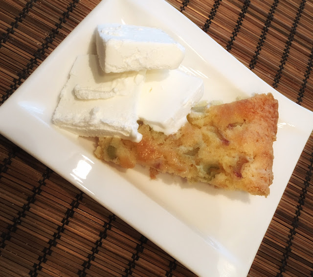 Toinen suosikki, oikeastaan jo monen vuoden takaa on Raparperi-kookospiirakka. Tätä on tullut leivottua jo, kun lapset olivat pieniä ja sitä on varioitu mustikan ja mansikan kanssa.