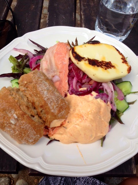 Syötiin erittäin maukkaat maalaissalaatit lohella ja jälkiruoaksi sitruuna-marenkipiiraan palat. Salaatti oli sopivan runsas ja ei edes hinnalla pilattu, 10 € salaatista johon kuuluu samaan hintaan kahvi. Sitruuna-marenkipiiraan hinta oli 4€ ja kyllä oli joka sentin arvoinen! Melkein vei kielen mennessään.
