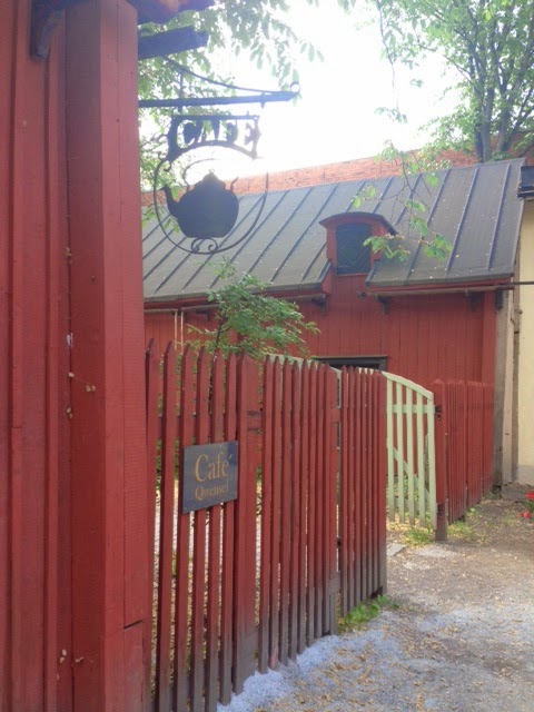 Lounaspaikaksi oli jo etukäteen valittu aivan ihana kahvila keskellä Turkua, tai tarkemmin sanotuna Aurajoen rannasta Apteekkimuseon takaa, Cafe Qwensel.