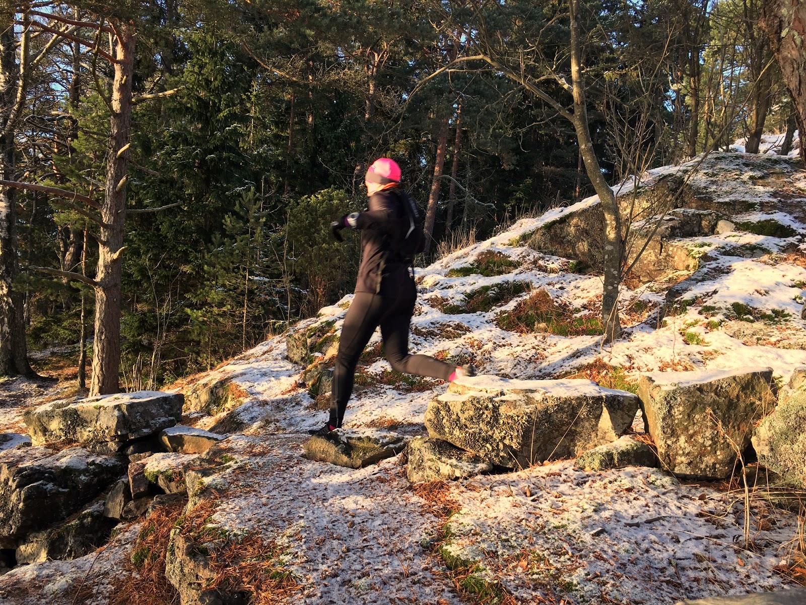Lauantaina vihdoin vedin lenkkarit jalkaan ja lähdettiin miehen kanssa tarpomaan Ruissalon polkuja. Vuorossa viikon polkutreenit. Lunta oli juuri sopivasti, askel ei uponnut hankeen edes metsäpoluilla mutta oli ihanan valoisaa. Ja aurinkokin paistoi ihanan lämpimästi. Matkaa taittui pikkuisen alle 15 kilsaa ja aikaa meillä pienten pysähdysten kanssa meni vartin alle 2 tuntia, keskivauhti oli noin 7:09 min/km ja keskisyke 153 bpm.