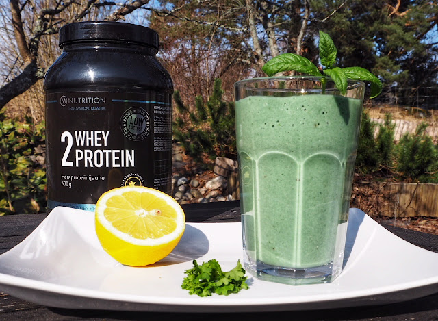 Kyllä vain, tein smoothien. Se oli vihreä, ruman vihreä. Voisi kuvitella, että se maistuu ihan kauhealle tai on epäterveellinen. Mutta eipä vaan, se oli ihan maukas ja terveellinenkin väittäisin sen olevan 🙂