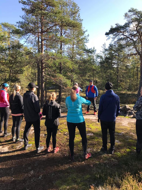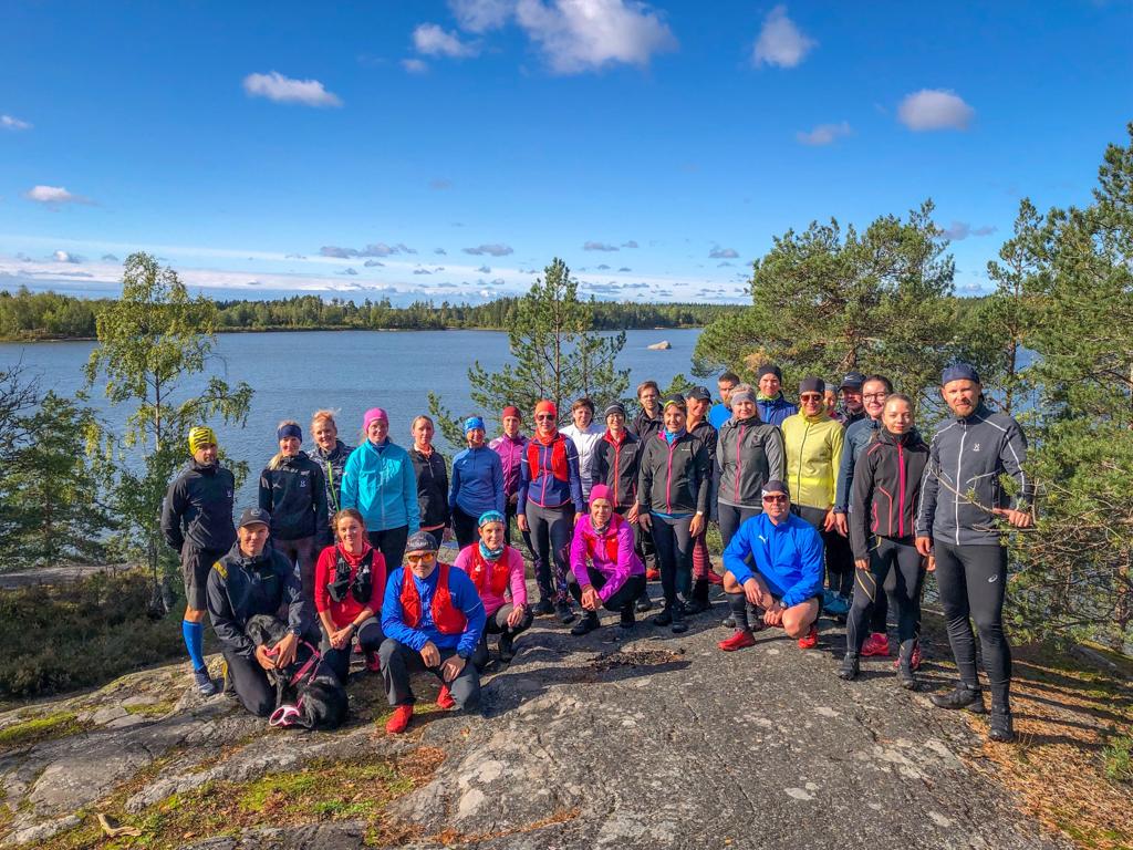 Jaettiin porukka kahteen ryhmään, Jaakon mukaan lähti kovemmat juoksijat ja minun ja Jarkon mukaan eritasoisia, jopa täysin ensikertalaisia taisi mukana olla muutama.