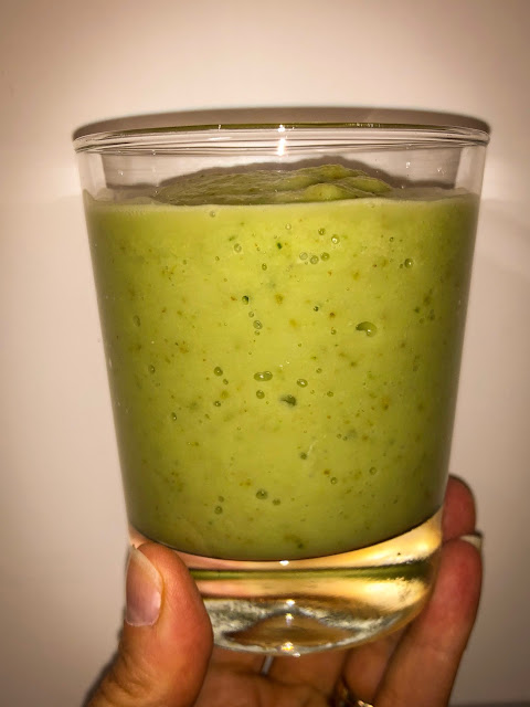 Viime aikoina olen tehnyt aamupalaksi vihersmoothien, johon olen lisännyt vielä sitruuna-inkiväärimehua ja tyrnimarjamehua. Molemmat sokeroimattomia tietysti.