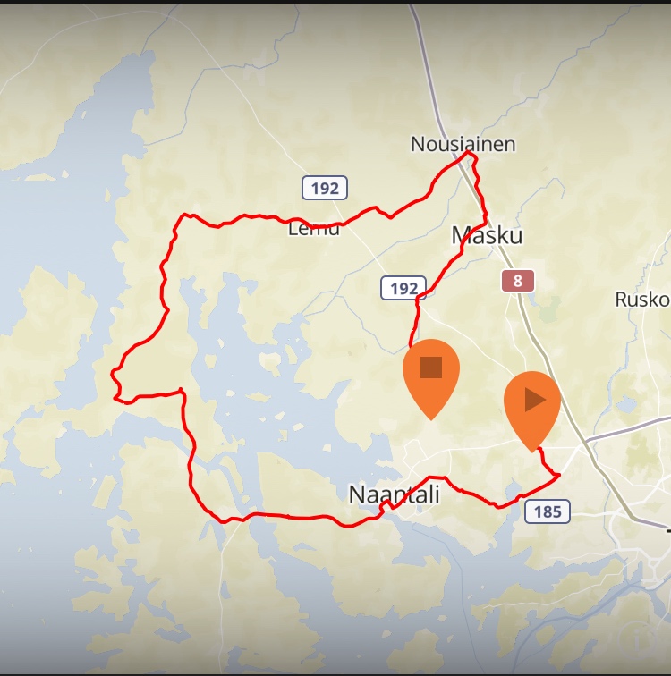 | Saman treenin reitti, ympyrää mentiin |