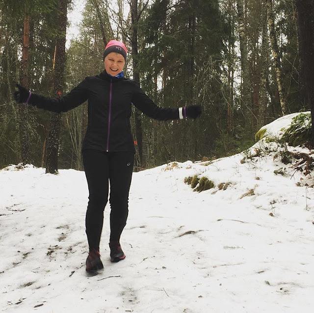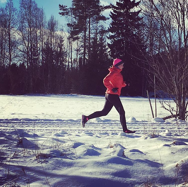 Keskiviikko iltapäivä, vedän työpäivän päätteeksi jalkaan juoksutrikoot ja kengät, vaihdan päälle pitkähihaisen juoksupaidan ja kuoritakin.