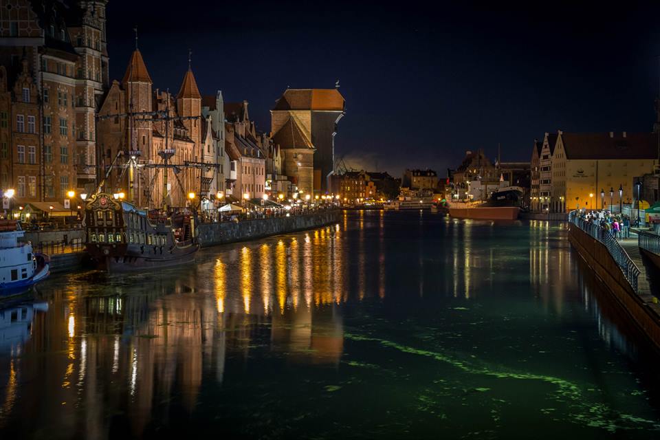 Lentomatka oli ajallisesti lyhyt eikä bussikyyti kentältä hotellillekaan kestänyt kauan. Hotellihuone oli varattu todella edullisesti jollain tarjouskoodilla Hiltonista, joka sijaitsi aivan Gdanskin vanhan kaupungin reunalla. Huoneesta meillä oli myös jokinäkymä ja pitkin jokirantaa päästiin sujuvasti kävelemään vanhan kaupungin alueelle.