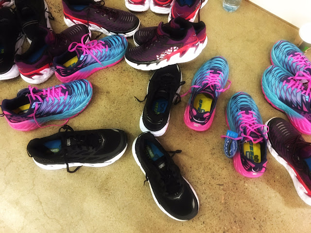 Melkein HCR:n pisteen vierestä löytyikin vielä tutumpaa porukkaa, nimittäin Vauhtisammakon Anni ja Mikko oli promoamassa Hoka One One-juoksukenkiä 4Runnersin pisteellä. Itse en ollut vielä aiemmin edes testannut kyseisiä juoksukenkiä ja olihan se nyt pakko niitä jalkaa kokeilla. Hieman oudoksuin ensin niiden paksua pohjaa, mutta kun sain tossun jalkaan, en enää oudoksunut mitään. Kenkä tuntui todella hyvältä jalassa ja jos olisin päässyt juoksemaan olisi askel kyllä rullannut hyvin. Ainakin sellaisen ensituntuman sain siitä.