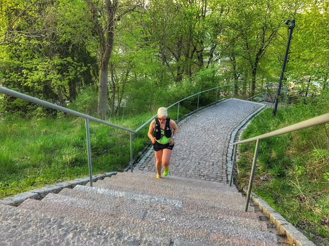 Osa portaista oli lyhyempiä ja osa hieman haastavampia ja pidempiä. Jotkut portaat oli tarkoitus vain juosta alaspäin, mutta osa juostiin edestakaisin. Yhdet portaat jäi kuvaamatta, nro 13 Martin portaat ja ne mentiin vain alaspäin. Omasta mielestäni rankimmat oli ehkä kohteen 6 Wecksellin portaat tai 9 Samppalinnan musiikkipaviljongin takaa nousevat portaat.