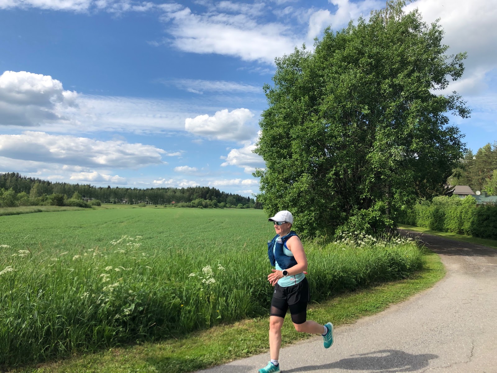 Muutaman kerran olen aiemminkin juossut töistä kotiin ja matka taittuu ihan mukavasti, aikaa menee reilusta tunnista puoleentoista, riippuen vauhdista. Tällä viikolla tiistaille sattui suhteellisen lämmin päivä ja tarkoitus oli tehdä kevyt pk-treeni. Pakkasin aamulla mukaan shortsit ja topin, lenkkarit ja juoksuliivin vesipulloineen. Työpäivän aikana jo tankkasin elektrolyyttejä veden joukossa, jotta keho jaksaa paremmin. Eihän tuo pitkä matka ole, mutta helle ja takana ollut työpäivä hieman verottivat voimia. Enkä tietenkään malttanut juosta tarpeeksi hitaasti vaikkakin aika hyvin sain pidettyä itseni aisoissa.