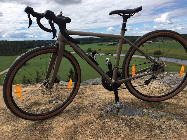 Päädyin ostamaan Kona Rove NRB DL:n, joka on esitteen mukaan sekoitus maantiepyörää, gravel-pyörää ja cycloa. Väritys pyörässä on huomattavasti hillitympi kuin mitä olin ajatellut, mutta tykästyin siihen silti.
