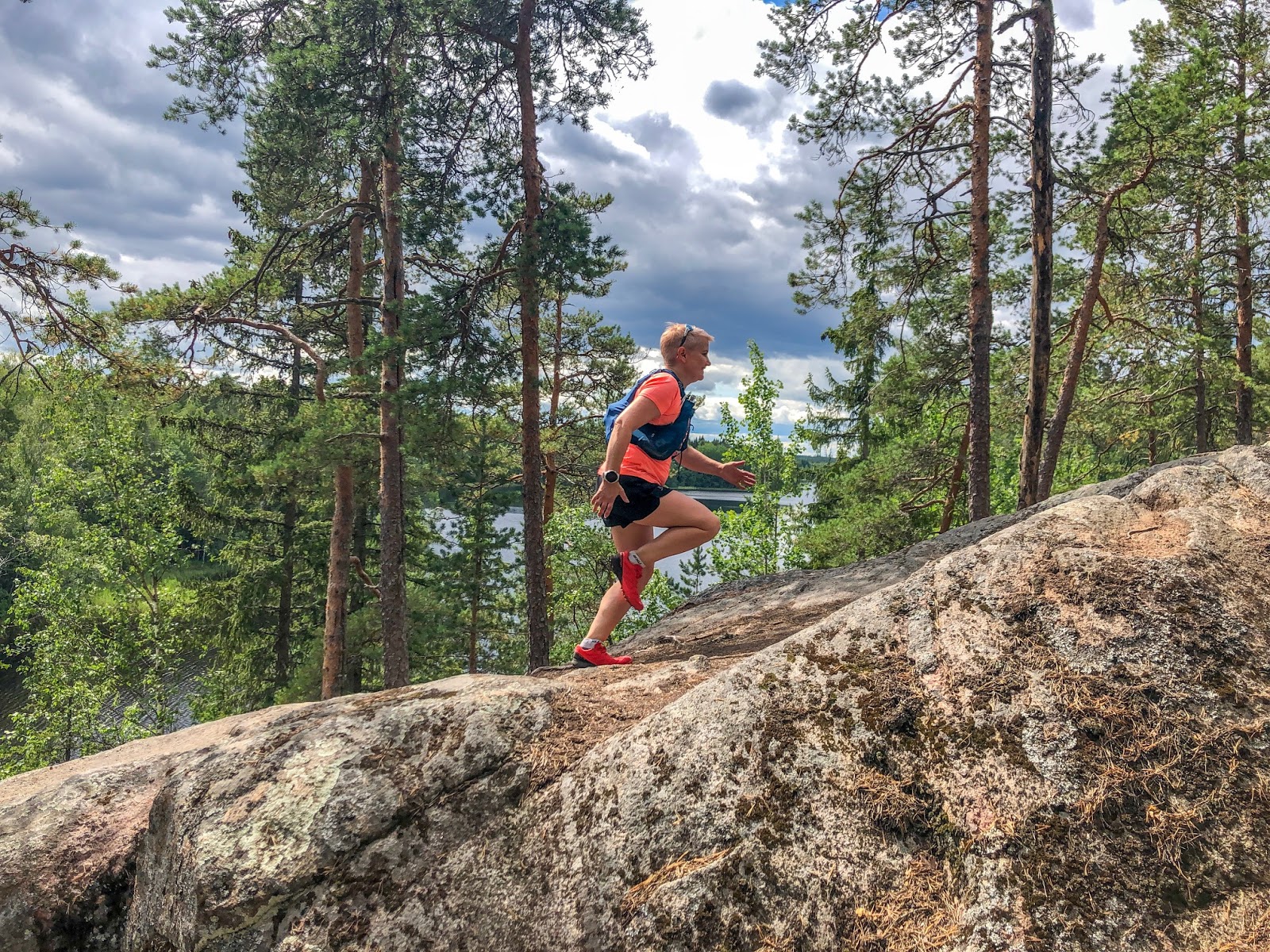 Auto jätettiin parkkiin Liesjärven kansallispuistossa Pirttilahden parkkialueelle ja napattiin juomaliivit selkään. Matkaan lähdettiin kevyttä vauhtia ja ihailtiin samalla mahtavia maisemia. Reitti oltiin suunniteltu etukäteen ja tallennettu Suunnon urheilukelloon.