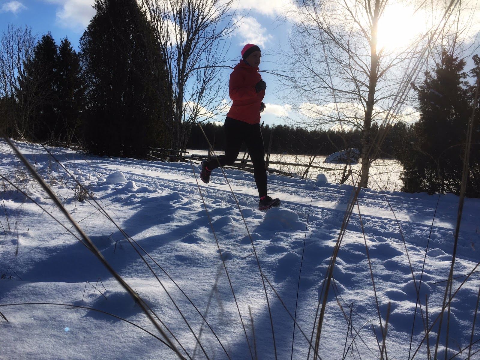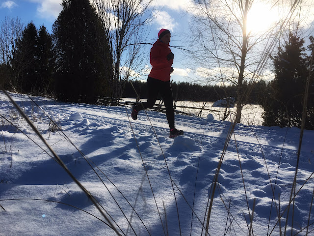 Lauantaina kävin juoksemassa lyhyen, siis todella lyhyen muutaman kilometrin lenkin. Jalka vaan ei noussut ja lumen alla ollut jää aiheutti pohkeiden väsymisen.