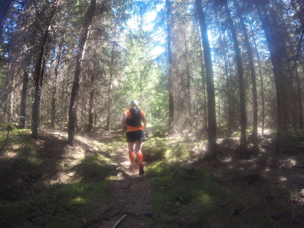 Tehtiin myös ylimääräinen lenkki, koska kadotettiin jossain vaiheessa reittimerkinnät kokonaan ja vasta noin 12 km juostuamme katsottiin kännykästä karttaa ja omaa sijaintia. Hieman oltiin kartalta ulkona, mutta onneksi ei kovin pahasti ja matka piteni 18 kilsasta noin 23 kilsaan 😀