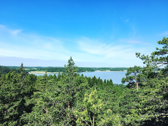 Lauantaina kiipesin kaverin kanssa Vaarniemen kalliolle ja näköalatorniin polkujuoksulenkillä. Maisemat oli mahtavat ja hiljainen vihreä luonto niin rauhoittava ja kaunis.