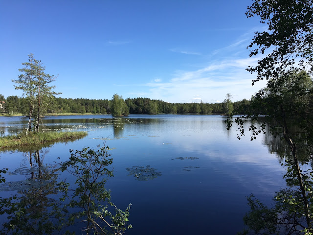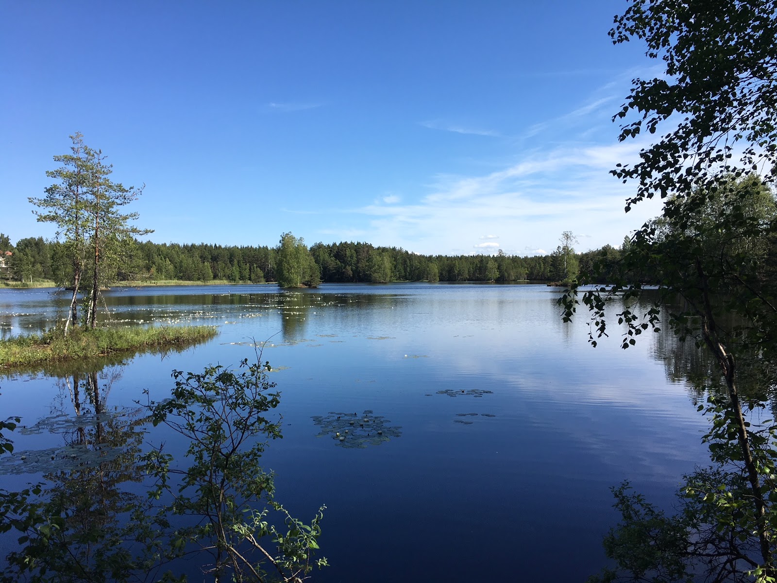 | Kyllä näissä maisemissa kelpaa juosta, lampi täynnä lumpeenkukkia |