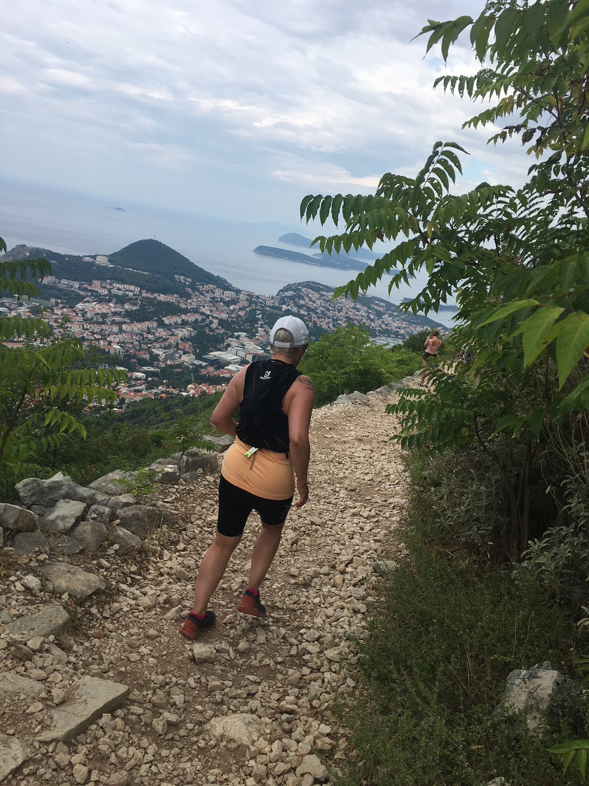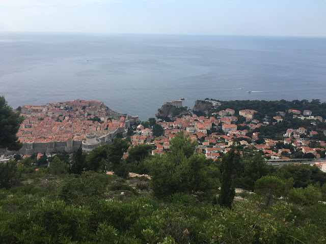 Palattiin viimeiseksi viikoksi saarilta takaisin Dubrovnikiin ja majapaikka sijaitsi vanhan kaupungin muurien sisäpuolella. Siitä oli lyhyt matka lähteä kipuamaan kävellen Srd-vuoren (mäen) päälle. Mäen päälle oli tehty alhaalta polku, joka paikoin oli pehmeää neulaspohjaa ja paikoin pirunpolkua pienine kivineen. Ensimmäinen yllätys oli se, että alkupiste tuolle polulle sijaitsi yhden vilkkaasti liikennöidyn valtaväylän reunalla eikä kohtaan ollut jalkakäytävää tai suojatietä. Hieman kapinallisina käveltiin autotunnelin läpi, koska en jaksanut alkaa etsimään puhelimen karttasovelluksen kautta vaihtoehtoista reittiä.