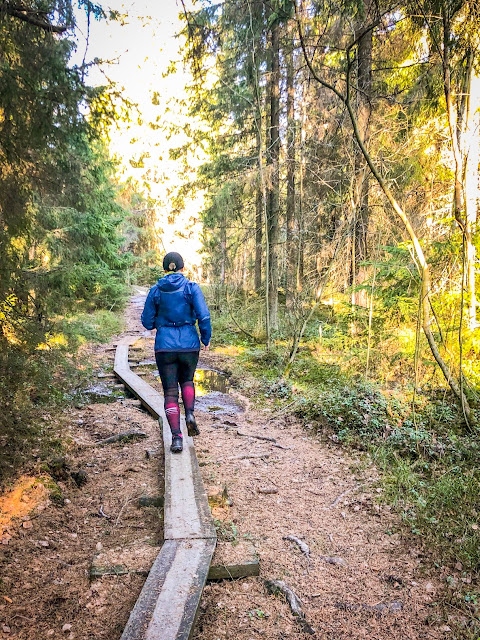 Alkuviikosta jo katsottiin, että säätiedotukset lupasivat lauantaille aivan mahtavaa ulkoilusäätä ja päätettiin viettää se poluilla. Edellisestä pitkästä polkulenkistä oli aikaa todella kauan, koska Karhunkierroksen jälkeen pisin polkulenkki on ollut n 14 km. Maantiellä toki Berliinissä tuli juostua pidempi lenkki. Syitä pitkien lenkkien vähyyteen on ollut erinäisiä, mutta nyt oli todella hyvä fiilis lenkin jälkeen.