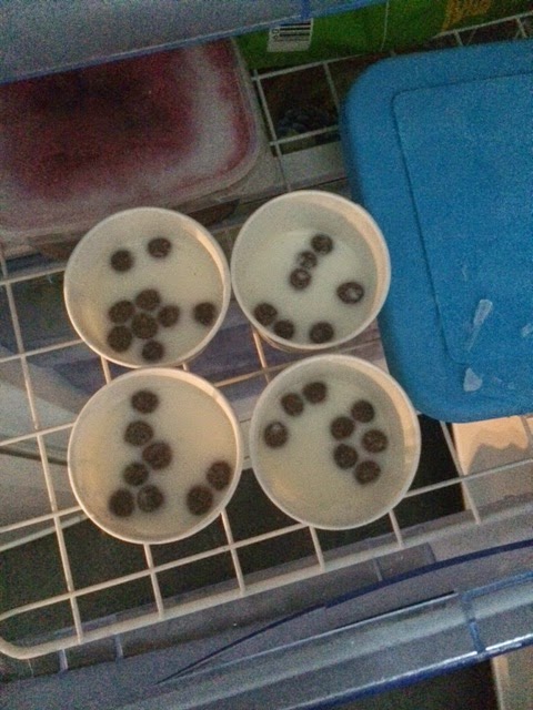 Meillä tuo toinen puoliskoni bongasi jostain netin syövereistä vinkin koirien kotijäätelöstä. Ostettiin karvakorvaa varten maustamatonta jugurttia ja laitettiin pahvimukeihin jugurttia ja vettä 50/50 ja sekaan muutama koiran ruokanappula. Ei muuta kuin pakastimeen yöksi ja siinä se oli! Helppoa kuin heinänteko ja koira nautti 🙂