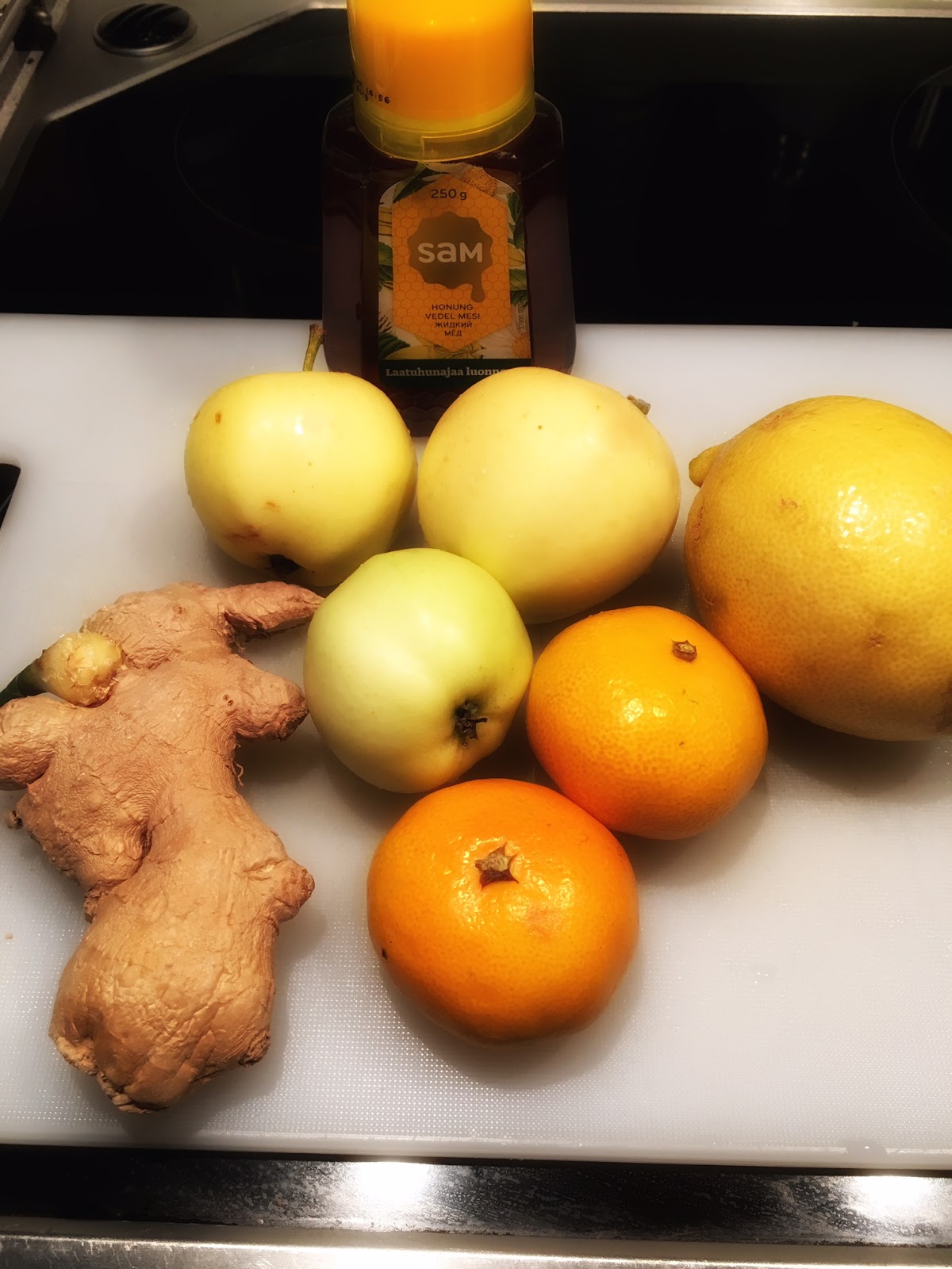 Tänään työpäivän jälkeen tein itselleni oikean vitamiinipommin, koska jälleen kerran alkoi vaivata flunssainen olo. Nenä on hieman tukossa ja paleltaa. Mitään flunssaa en todellakaan halua, joten otin järeät aseet käyttöön.