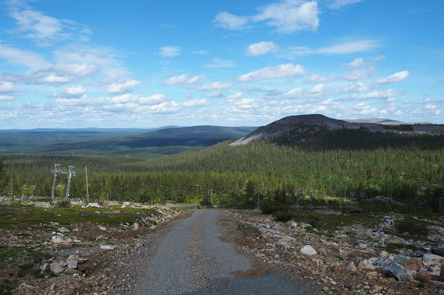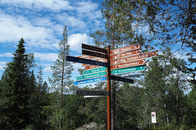 Seitakierroksen loppuvaiheessa pysähdyttiin pitämään muutaman minuutin tauko ja nähtiin kyltti, joka opasti Iso-Ylläksen huipulle. Matkaa kyltin mukaan oli 5 kilsaa ja se oli yhtä nousua koko matkan. Välillä oli pakko pysähtyä, kun jalkoja hapotti. Vastaan tuli muutama pyöräilijä, jotka olivat matkalla alaspäin, itse en kyllä vapaaehtoisesti laskisi sitä rinnettä pyörällä.