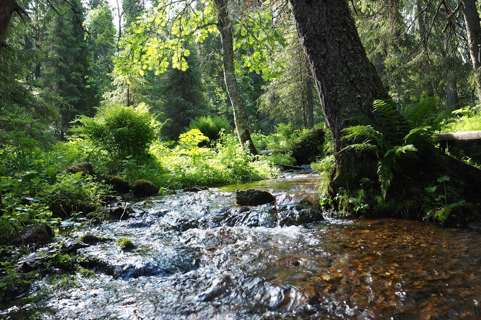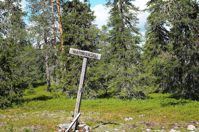 Maisemat muuttui aika nopeasti Oulun jälkeen ja pakko sanoa, että kyllä nuo Kemijoen ympäristön maisemat on upeita! Matka taittui melkein huomaamatta, kun ihaili niitä. Pysähdyttiin välillä Napapiirillä lounaalla ja jatkettiin matkaa. Alkuillasta vähän ennen viittä oltiin perillä Äkäslompolossa, jossa ennen mökille menoa käytiin ruokaostoksilla Jounin kaupassa. Mukaan tarttui ruokatarvikkeet melkein koko viikoksi, mitä nyt vähän täydennystä pitää hakea ennen loppuviikkoa.